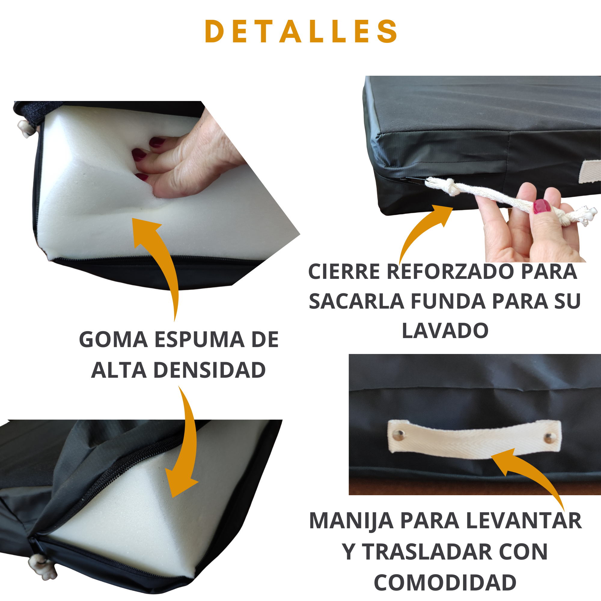 • Espuma rígida de alta densidad: no se aplasta, brinda soporte real.