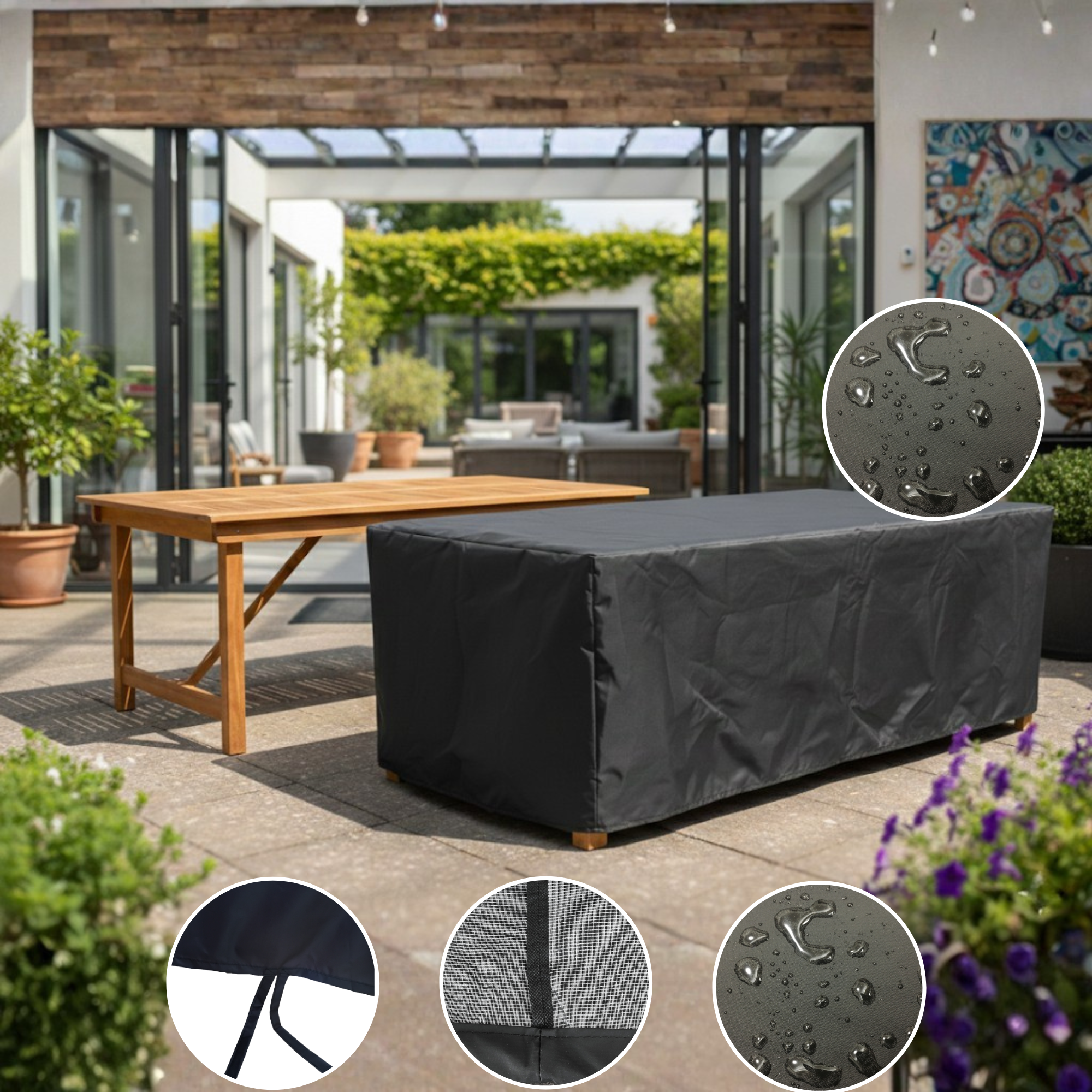 PRODUCTO: Funda cubre MESA de JARDIN CON SILLAS – 100% Impermeable!