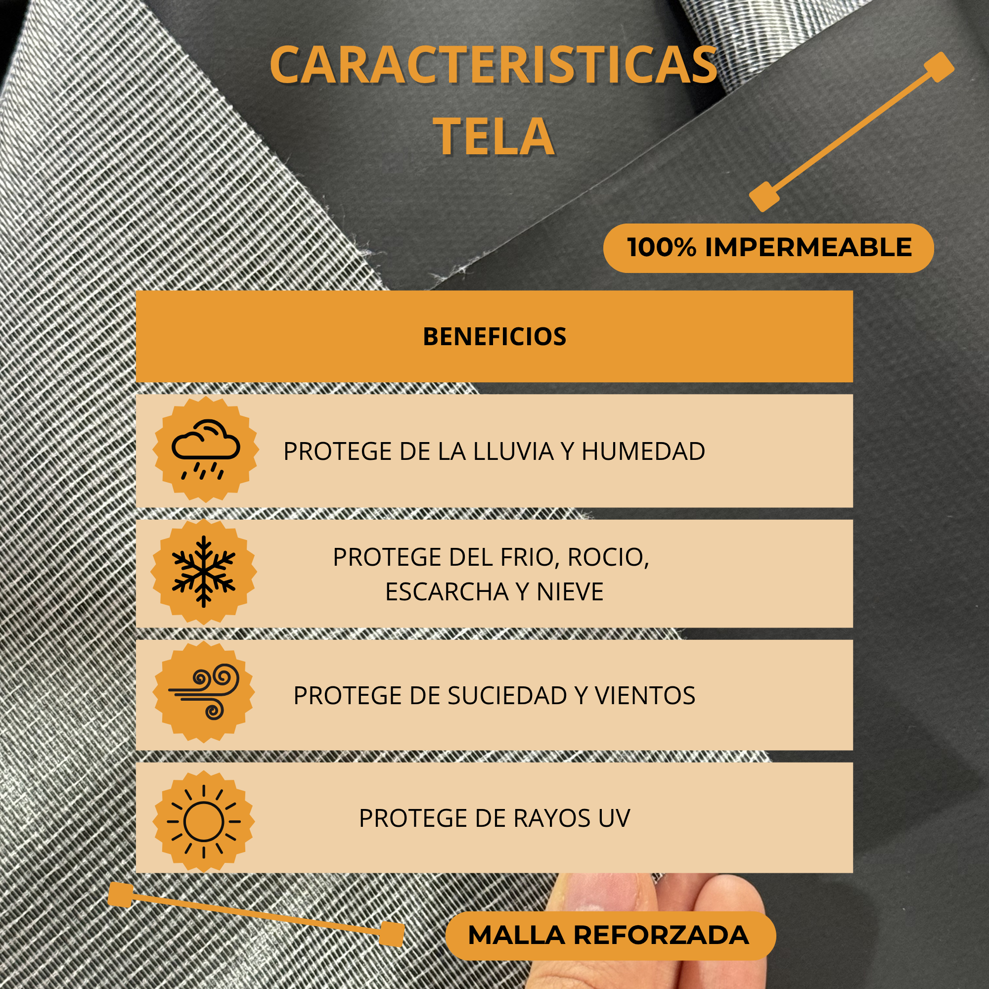 – 100% IMPERMEABLE al agua y con protección contra rayos UV