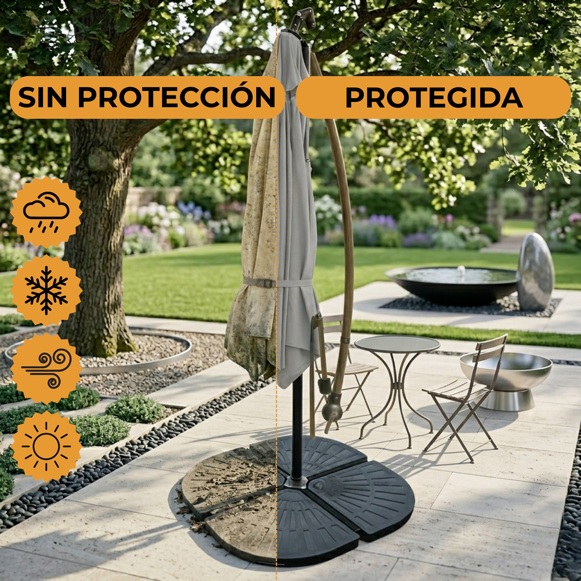 – Resistente al agua PROTEGE contra la lluvia, la nieve, el sol, la suciedad y no se agrieta ante las bajas temperaturas o mucho calor